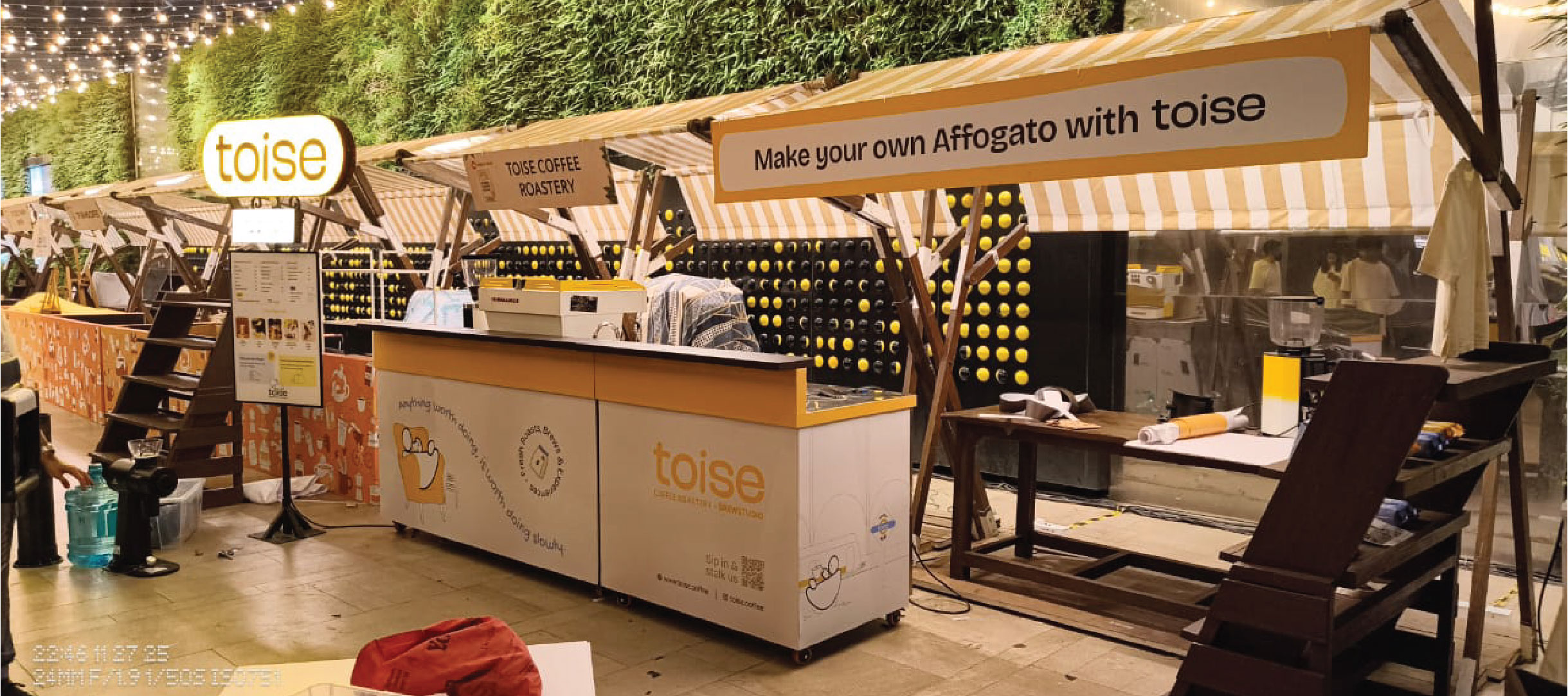 A bright and engaging stall setup was executed for Toise Coffee, designed to enhance brand visibility. The setup featured bold branding, clear signage, and a well-planned service counter that ensured smooth customer interaction.